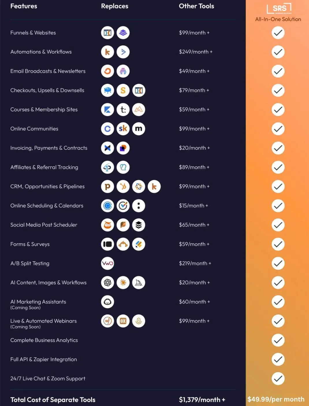 SRS is an all-in-one platform designed to help online creators, course builders, coaches, and digital entrepreneurs build and grow their business online.